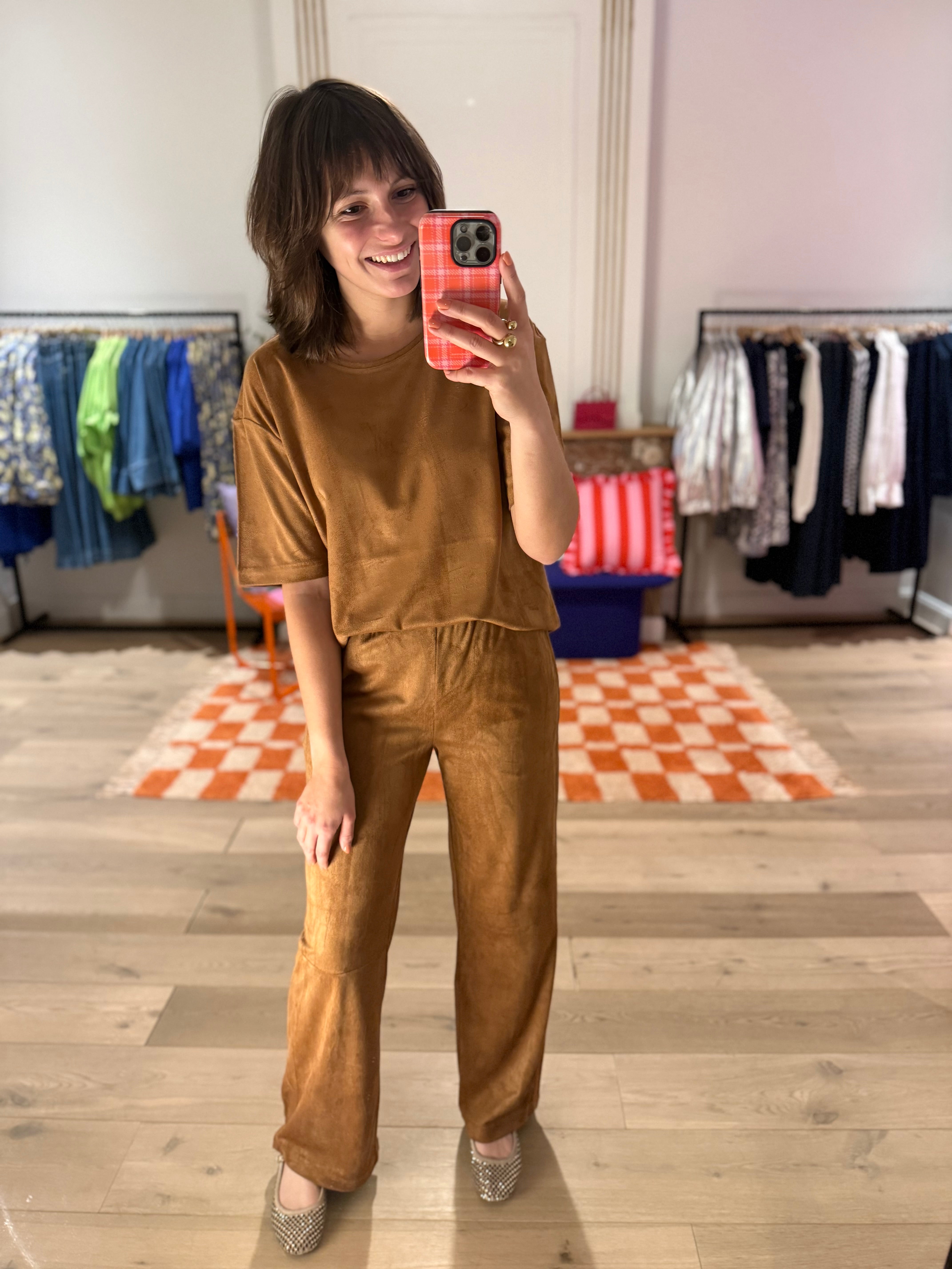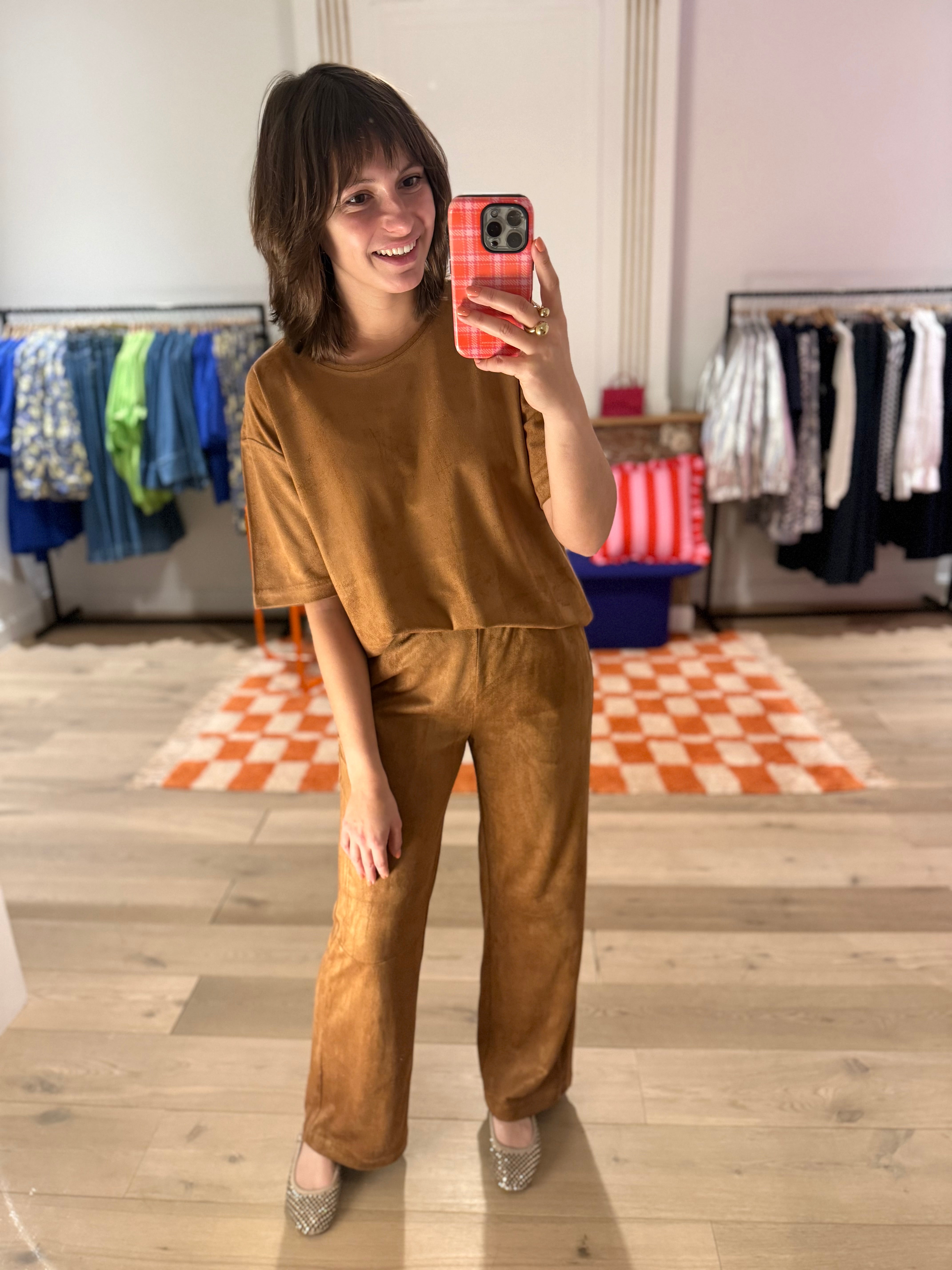 MIMI BLOUSE FAUX SUEDE - BROWN